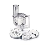 Food processor attachment for the Bosch Compact mixer. It offers a traditional food processor knife blade; 3 slicing/shredding discs, and a hi-speed drive for blenders, with a 5-cup bowl capacity..Designed to fit all Bosch stand mixer/kitchen machines whose model numbers begin with MUM 4, this food processor consists of a 5-cup work bowl with a cutting/mixing blade for chopping and mincing all manner of food, including meat, and for mixing liquids like soups and salad dressings. (The food processor has no motor and cannot operate independently of the kitchen machines.) Three stainless-steel disks and a countertop disk holder are included. One disk slices cucumbers, cabbage, potatoes, and other vegetables. Another shreds carrots, celery, radishes, and other food. The third grates cheese, chocolate, nuts, and potatoes. The disks fit onto the holder horizontally for handy storage. The bowl is made of virtually unbreakable plastic, and parts disassemble easily for clea ning and are dishwasher-safe. --Fred Brack- Fits all Bosch stand mixer/kitchen machines whose model numbers begin with MUM 4
